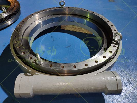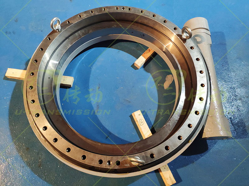 SE-II-O-32中載全防護(hù)蝸輪蝸桿式回轉(zhuǎn)驅(qū)動(dòng),客戶應(yīng)用在工程機(jī)械領(lǐng)域,需要大自鎖力,抵御大沖擊載荷,根據(jù)客戶要求不二傳動(dòng)給客戶設(shè)計(jì)了這款32寸非標(biāo)的回轉(zhuǎn)驅(qū)動(dòng),回轉(zhuǎn)支承采用單齒齒面感應(yīng)淬火,保證自鎖力和沖擊載荷,蝸桿加工后氮化處理,保證耐沖擊長(zhǎng)壽命。選用優(yōu)質(zhì)圓錐軸承,保證回轉(zhuǎn)驅(qū)動(dòng)可靠運(yùn)轉(zhuǎn)。