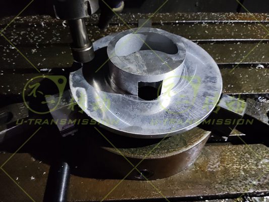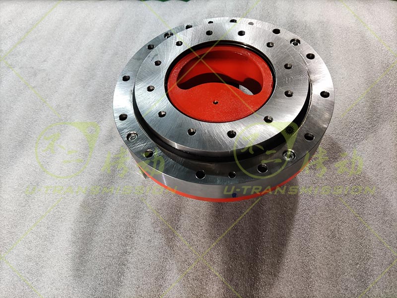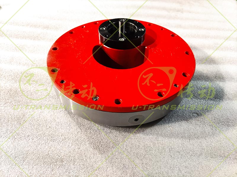 D226內(nèi)齒直齒回轉(zhuǎn)驅(qū)動(dòng)使用在自動(dòng)化設(shè)備上,客戶需要載荷很小,轉(zhuǎn)速很低,安裝空間非常有限,希望回轉(zhuǎn)驅(qū)動(dòng)盡量輕,根據(jù)客戶要求,不二傳動(dòng)為客戶設(shè)計(jì)了內(nèi)齒D226直齒驅(qū)動(dòng),采用小模數(shù)齒,小齒輪直徑非常小,不適合做軸孔,采用連接軸傳動(dòng),回轉(zhuǎn)支承采用超薄設(shè)計(jì),為了減輕重量,殼體采用6061硬鋁加工而成。