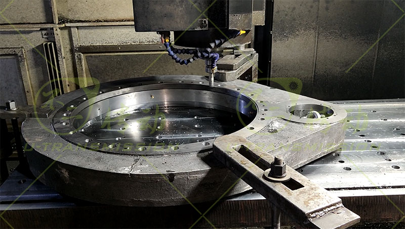 重載加強(qiáng)型0800齒輪式回轉(zhuǎn)驅(qū)動(dòng)應(yīng)用在工程機(jī)械上,針對(duì)客戶的工況,不二傳動(dòng)工程師在常規(guī)重載驅(qū)動(dòng)的基礎(chǔ)上進(jìn)行改進(jìn),優(yōu)化設(shè)計(jì),對(duì)關(guān)鍵部件進(jìn)行加強(qiáng),對(duì)可能出現(xiàn)問題的部件進(jìn)行高可靠性設(shè)計(jì),確保驅(qū)動(dòng)在使用中穩(wěn)定可靠。回轉(zhuǎn)驅(qū)動(dòng)的齒圈和齒輪采用表面淬火,淬火工藝采用單齒淬火,保證齒表面堅(jiān)硬耐磨,承載高,齒芯部柔軟耐沖擊,在大扭矩和沖擊載荷的情況下保證齒的可靠性。