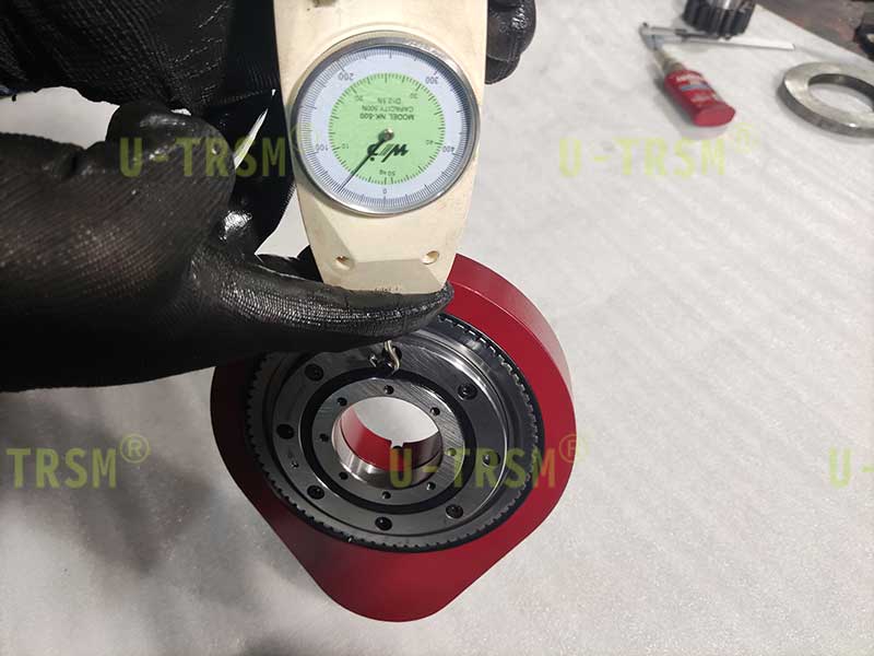RU85精密交叉滾子外齒回轉(zhuǎn)驅(qū)動(dòng)使用在自動(dòng)化設(shè)備上,客戶(hù)使用載荷小,轉(zhuǎn)速低,安裝空間有限,驅(qū)動(dòng)重量要求5Kg,驅(qū)動(dòng)跳動(dòng)要求嚴(yán)格,需要負(fù)游隙。根據(jù)客戶(hù)的要求,不二傳動(dòng)為客戶(hù)設(shè)計(jì)了這款精密回轉(zhuǎn)驅(qū)動(dòng)。