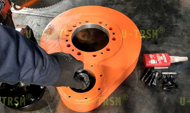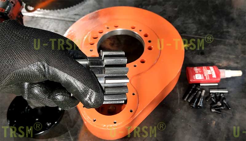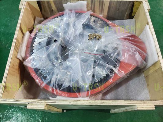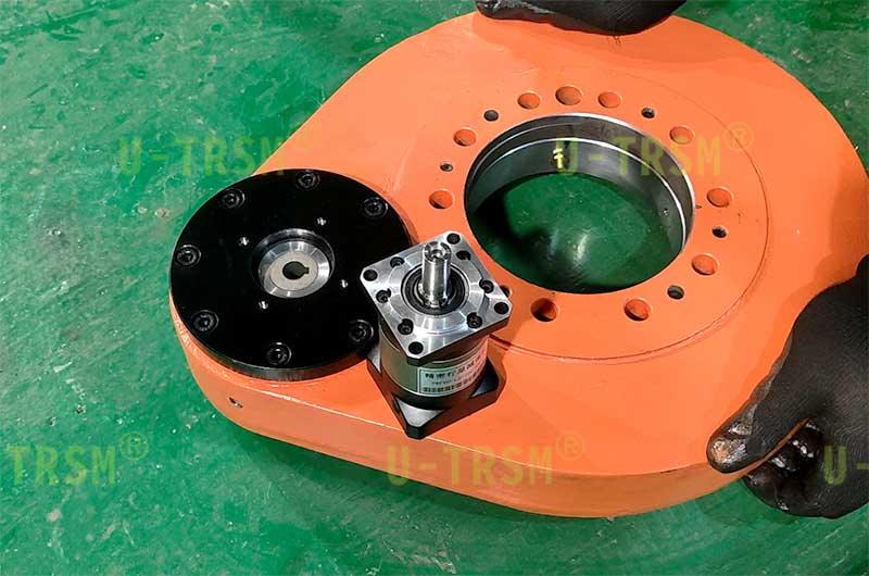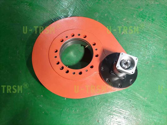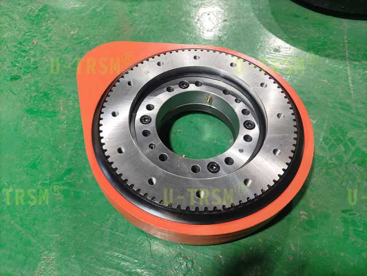S-I-O-0229 精密直齒回轉(zhuǎn)驅(qū)動(dòng)應(yīng)用在工業(yè)自動(dòng)化設(shè)備上??蛻羰褂盟欧姍C(jī)為回轉(zhuǎn)驅(qū)動(dòng)提供動(dòng)力,讓我們配套精密行星減速機(jī),要求齒嚙合圓上的齒間隙≤0.1mm,這也就意味著回轉(zhuǎn)支承的游隙和徑向跳動(dòng)都要做的非常小。