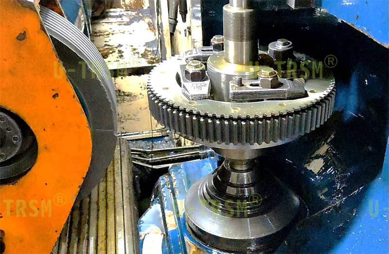 精密型回轉(zhuǎn)驅(qū)動(dòng)我們一般采用0游隙的回轉(zhuǎn)支承,這樣可以保證回轉(zhuǎn)驅(qū)動(dòng)工作的時(shí)候外圈不會(huì)因?yàn)槭芰Ξa(chǎn)生軸向和徑向的移動(dòng),避免了因?yàn)榛剞D(zhuǎn)支承游隙造成的精度損失。為了保證齒間隙≤0.1mm,必須在齒淬火后對齒圈和齒輪進(jìn)行磨齒加工,磨齒可以保證齒輪和齒圈有非常好的齒跳,這是保證齒間隙的前提條件。