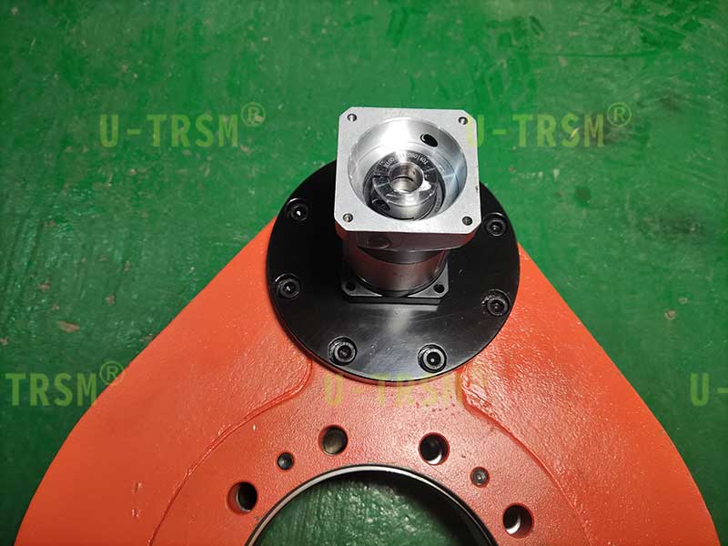 實(shí)際上,行星減速機(jī)和軸孔配合會(huì)影響傳動(dòng)精度,但是影響非常小。行星減速機(jī)連接在回轉(zhuǎn)驅(qū)動(dòng)上,回轉(zhuǎn)驅(qū)動(dòng)都有一定的減速比,從5.4到19.6不等,行星減速機(jī)的誤差需要除以驅(qū)動(dòng)減速比,才是對系統(tǒng)造成的誤差的最終值,這樣算下來產(chǎn)生的影響是微乎其微的。所以系統(tǒng)的精度主要還是取決于回轉(zhuǎn)驅(qū)動(dòng)這個(gè)直接的傳動(dòng)單元的精度。