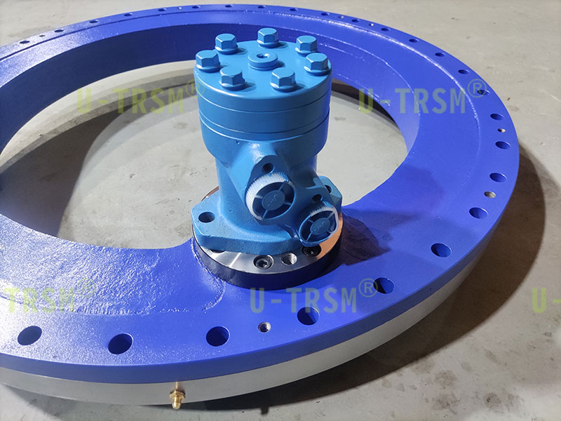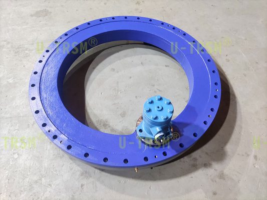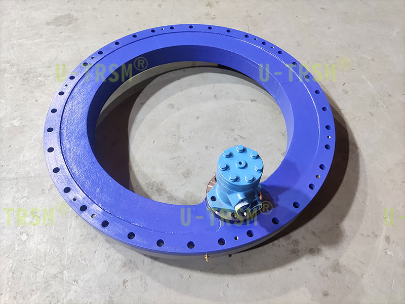 內(nèi)齒的回轉(zhuǎn)驅(qū)動(dòng)主動(dòng)齒輪分布在回轉(zhuǎn)驅(qū)動(dòng)的內(nèi)部,擠壓內(nèi)部空間,回轉(zhuǎn)驅(qū)動(dòng)的外徑是個(gè)整圓,完全滿足客戶的使用要求?;剞D(zhuǎn)驅(qū)動(dòng)的內(nèi)圈被主動(dòng)齒輪帶動(dòng)旋轉(zhuǎn),外圈和殼體靜止不旋轉(zhuǎn)。