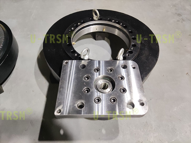 S-Ⅰ-O-0311輕型直齒回轉(zhuǎn)驅(qū)動(dòng),應(yīng)用在特種自動(dòng)化設(shè)備上,客戶對(duì)于旋轉(zhuǎn)精度、回轉(zhuǎn)驅(qū)動(dòng)的穩(wěn)定性有很高的要求,在安裝的法蘭接口上面,客戶適配的異形的減速機(jī)。不二傳動(dòng)工程師根據(jù)客戶的工況,設(shè)計(jì)了S-Ⅰ-O-0311輕型直齒式回轉(zhuǎn)驅(qū)動(dòng),其中回轉(zhuǎn)支承按照0游隙設(shè)計(jì),端面跳動(dòng)≤0.03,齒面淬火,磨齒處理,齒精度達(dá)到6級(jí),大大減小了回轉(zhuǎn)驅(qū)動(dòng)的回程間隙,使客戶的分度更準(zhǔn)確,0游隙的設(shè)計(jì)及磨齒的加工保證了客戶使用的穩(wěn)定性,并提高了回轉(zhuǎn)驅(qū)動(dòng)的整體使用壽命。