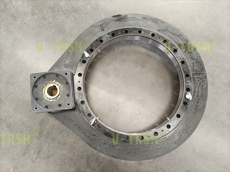 S-Ⅲ-O-0755 重型直齒式回轉(zhuǎn)驅(qū)動,應(yīng)用在特種車輛上,回轉(zhuǎn)驅(qū)動重要承受徑向力,及較小的傾覆力矩,高精度,大減速比,輸出力矩要求高。不二傳動設(shè)計工程師根據(jù)客戶的需求,設(shè)計并制造了S-Ⅲ-O-0755 重型直齒式回轉(zhuǎn)驅(qū)動,齒淬火,并進(jìn)行磨齒處理,提高了齒的承載能力,更耐磨,磨齒達(dá)到齒精度6級,及大的減小了齒的間隙,回轉(zhuǎn)支承設(shè)計0游隙,在產(chǎn)品豎直安裝時,使得回轉(zhuǎn)驅(qū)動的整體運轉(zhuǎn)更平穩(wěn),不二傳動在各種特種應(yīng)用上面,設(shè)計成異形的回轉(zhuǎn)驅(qū)動有著很豐富的經(jīng)驗。