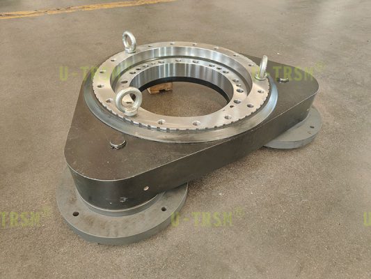 不二傳動的工程師給客戶設(shè)計了一款高精度雙輸入重載荷大扭矩回轉(zhuǎn)驅(qū)動:該設(shè)備用在自動化設(shè)備上,回轉(zhuǎn)驅(qū)動中的轉(zhuǎn)盤軸承采用零游隙設(shè)計,可以保證回轉(zhuǎn)驅(qū)動在使用過程中的平穩(wěn)性及精度。