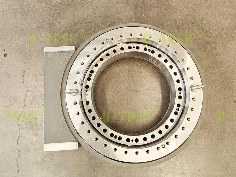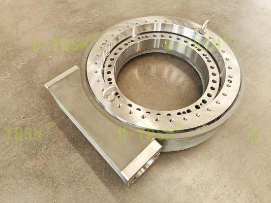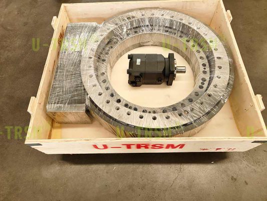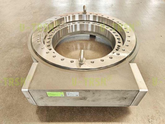 不二傳動(dòng)設(shè)備(洛陽(yáng))有限公司給客戶(hù)設(shè)計(jì)了一款大模數(shù),大扭矩,豎直安裝使用的蝸輪蝸桿式回轉(zhuǎn)驅(qū)動(dòng)。該回轉(zhuǎn)驅(qū)動(dòng)用在大型自動(dòng)化設(shè)備上,豎直安裝使用,載荷較大,并伴隨很大的傾覆力矩,回程旋轉(zhuǎn)時(shí)要求穩(wěn)定平順。經(jīng)過(guò)與客戶(hù)的多次溝通,不二傳動(dòng)的設(shè)計(jì)師根據(jù)客戶(hù)工況,推薦使用蝸輪蝸桿式回轉(zhuǎn)驅(qū)動(dòng),并使用大模數(shù)來(lái)增加回轉(zhuǎn)驅(qū)動(dòng)的扭矩,根據(jù)齒承載及力學(xué)性能分析,輸出扭矩可達(dá)近200KNm。