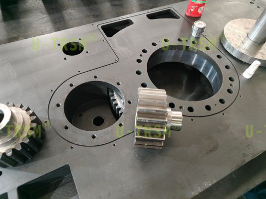 經(jīng)過與客戶的不斷溝通,反復進行3D設計模擬實驗,不二傳動給客戶研發(fā)了此款回轉(zhuǎn)驅(qū)動。雙齒輪的設計,一個為動力齒輪,另一個齒輪從動配合編碼器精準反饋旋轉(zhuǎn)角度。此款回轉(zhuǎn)驅(qū)動齒輪達到6級,使得回程間隙極大的減小,達到客戶的使用要求,并且集成于底座,集成化的設計在加工方面可以使得回轉(zhuǎn)驅(qū)動整體更為方便簡潔。