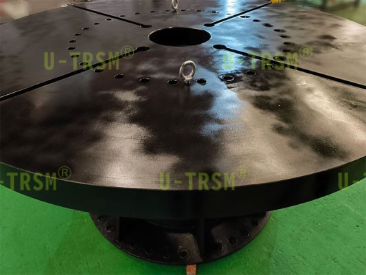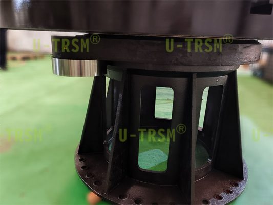 此款集成化回轉(zhuǎn)驅(qū)動(dòng),結(jié)合旋轉(zhuǎn)平臺(tái)于一身??蛻粢笃脚_(tái)最大載重3t,旋轉(zhuǎn)平臺(tái)要求直徑2m,平臺(tái)轉(zhuǎn)速12r/min,額定輸出扭矩≥13KN.m。不二傳動(dòng)設(shè)計(jì)工程師根據(jù)客戶需求,研發(fā)了此款驅(qū)動(dòng),集成底座與平臺(tái)的一體化設(shè)計(jì),通過(guò)客戶的載荷等實(shí)際應(yīng)用工況,根據(jù)有限元設(shè)計(jì)分析,確定驅(qū)動(dòng)的型號(hào),底座與平臺(tái)的材質(zhì)與厚度等參數(shù)。